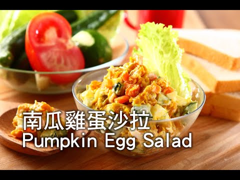 南瓜雞蛋沙拉 Pumpkin Egg Salad 材料 栗子南瓜 200公克 小黃瓜 80公克 紅蘿蔔 40公克 雞蛋 1顆 Ingredients 200 grams pumpkin 80 gr...