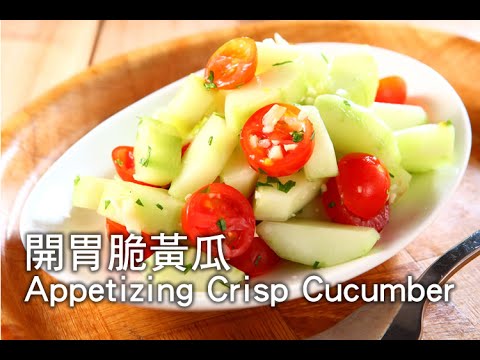 開胃脆黃瓜Appetizing Crisp Cucumber 材料 大黃瓜 1/2條 小番茄 5顆 薄荷葉 5片 蒜末 3公克 Ingredients 1/2 large cucumber 5 ...